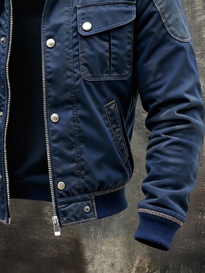 Herren-Outdoorjacke im Retro-Patchwork-Farbblock-Stil