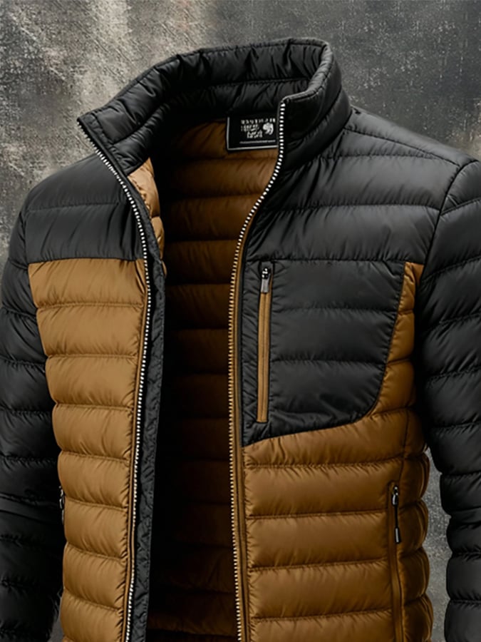 Herren Retro Warme Outdoor-Jacke mit Reißverschluss, Baumwollmantel